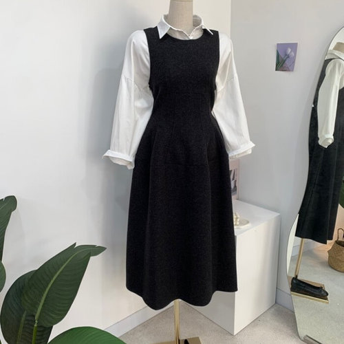 나시 모직느낌 데일리 롱원피스 슬림드레스 클래식 롱 (KYR-WFGV9EF)
