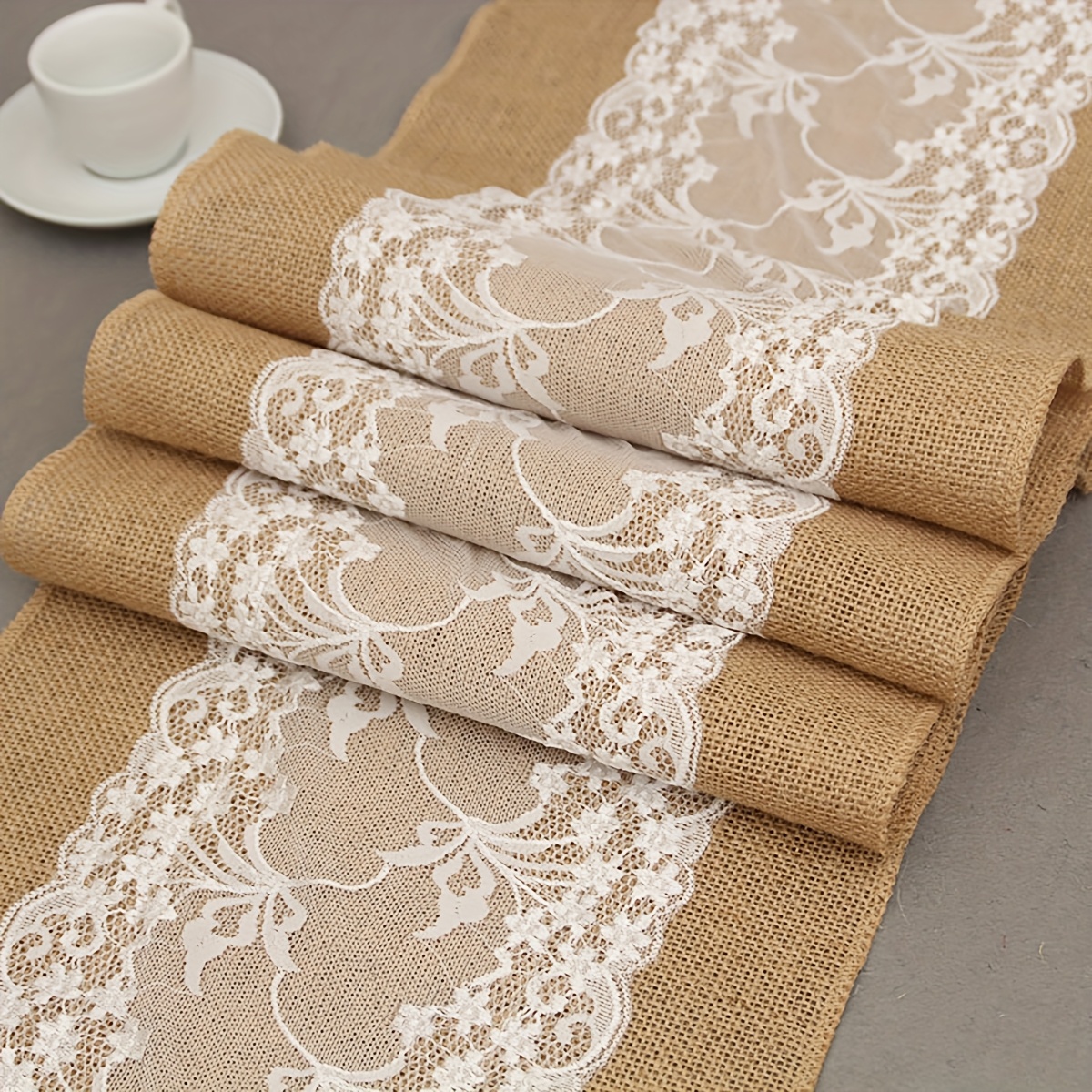 TEMU 1pc 레이스 테이블 클로스 - 로맨틱한 베이지 & 화이트 플로럴 디자인, 세탁 가능한 린넨/폴리에스터 블렌드, 결혼식, 식탁, 특별한 기회에 완벽, 웨딩 테이블 장식 | 우아한 테이블 세팅 | 기계 직조 직물