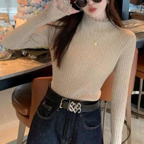 [신상오픈런]여성 슬림핏 반목 긴팔 니트 레이스 레이어드