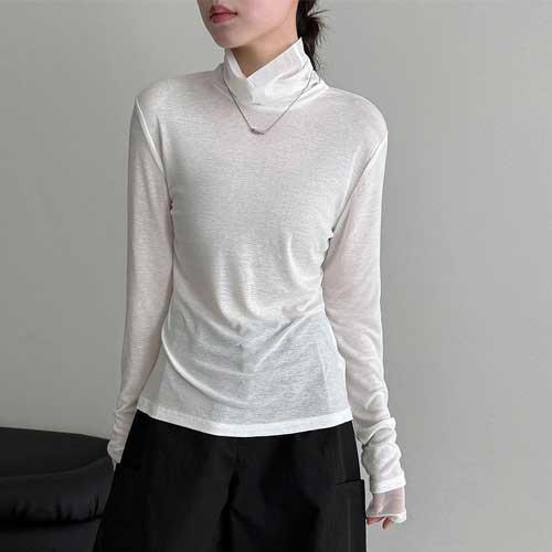 바띠 물결 폴라 니트 레이어드 베이직 티셔츠