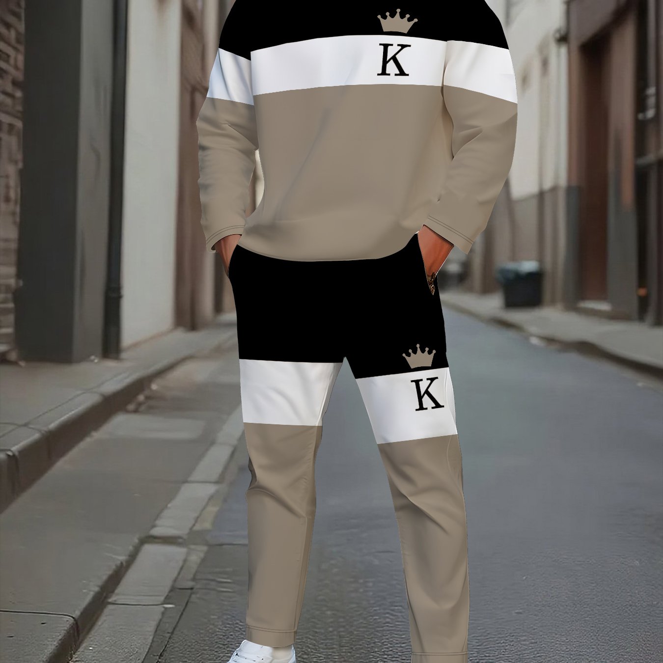 TEMU 남성용 긴팔 스웨트셔츠 및 바지 세트, 가을/겨울 2피스 프린트 라운드넥 긴팔 아웃도어 캐주얼 스포츠웨어, 크리스마스 선물, 캐주얼 웨어, 스포츠웨어, 프린트 스웨트셔츠, 긴팔 상의, 캐주얼 웨어