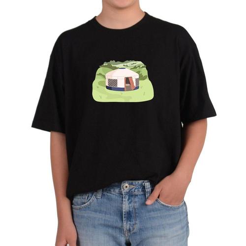 반팔라운드 몽골게르 텐트 초원 유목 그림 전사이즈 WFIX4WO