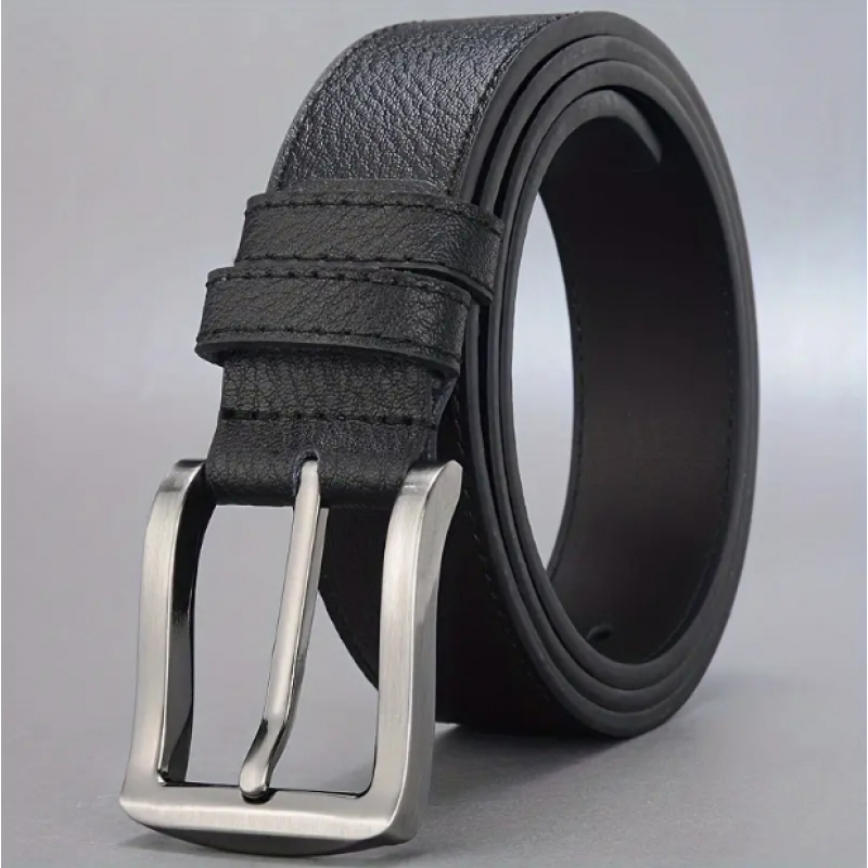 TEMU 남성용 천연 가죽 벨트 | 클래식 블랙, 비즈니스 및 캐주얼 스타일, 철합금 버클, 아버지 또는 남편을 위한 완벽한 선물, 중간 폭, 땀 방지, 넓은 허리에 적합, 올 시즌, 스포츠 데님 액세서리 | 모던 버클 디자인 | 내구성