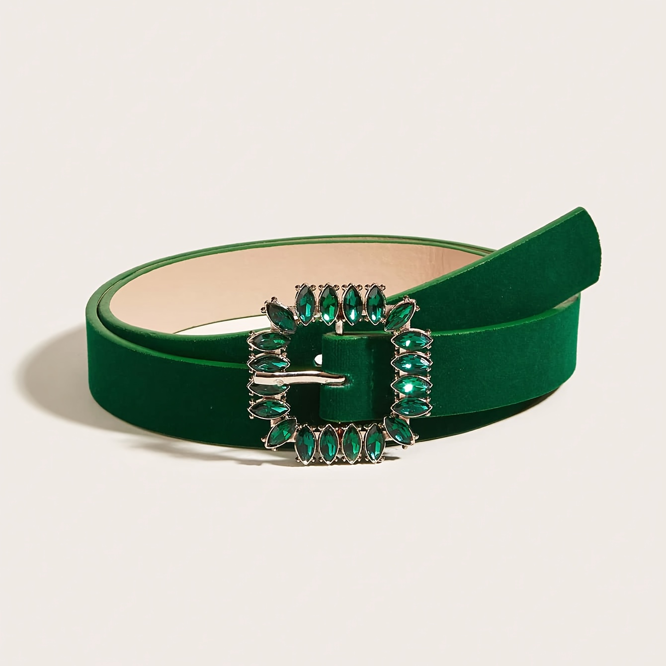 TEMU 우아한 라인스톤 그린 벨트 |, 철합금 버클, , 파티, 축제 등에 적합