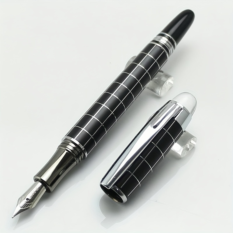 TEMU 1개 럭셔리 비즈니스 만년필 - 클래식 블랙 격자 디자인, 0.5mm 표준 펜촉, 스크류 캡 마감 금속 구조, 기업 선물 및 프로모션 이벤트용 우아한 필기구, 세련된 외관의 만년필