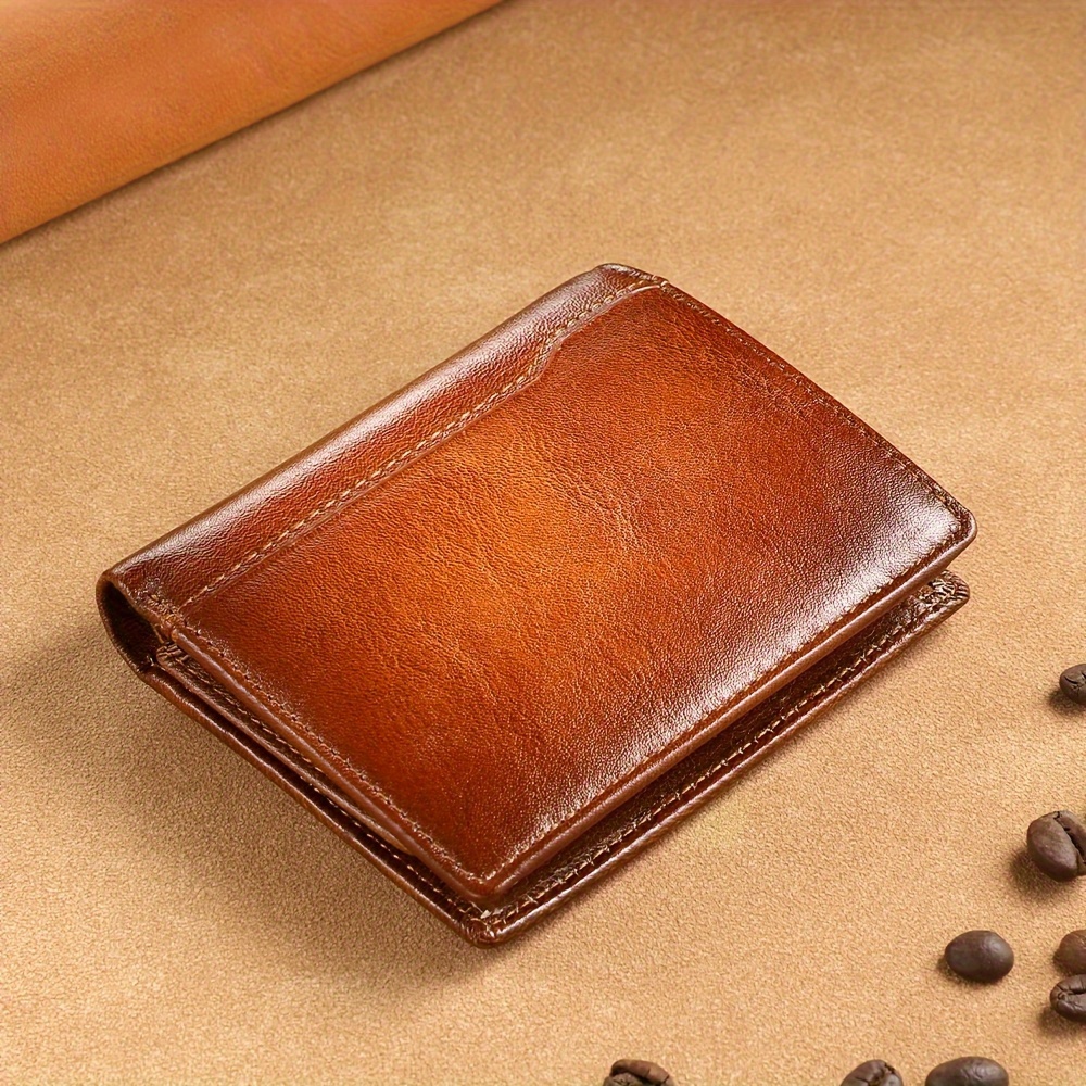 TEMU 빈티지 디스트레스 탑 레이어 소가죽 남성 지갑, 천연 가죽 세로형 짧은 사기 방지 카드 홀더, 신용 카드 케이스, ID 문서 홀더, 컴팩트 지갑, 다중 카드 슬롯, 휴대폰 카드 슬롯, 남자친구를 위한 완벽한 선물, 크리스마스 선물
