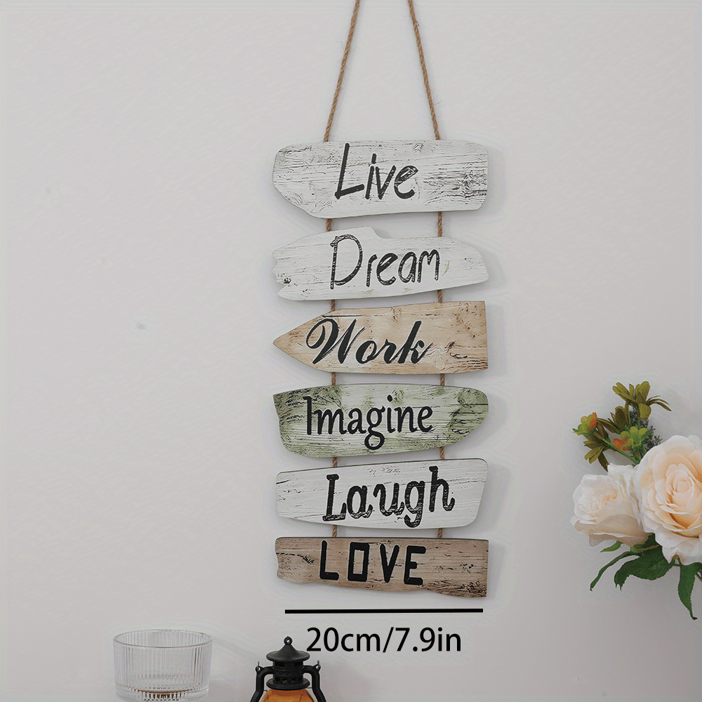 TEMU 1개 러스틱 우든 인스피레이셔널 벽걸이 "인생, 꿈, 일, 상상, 미소, 사랑" 문구 - 플라크 & 황마 로프 행거, 팜하우스, 오피스 데코 - 휴일, 생일, 결혼식에 적합한 격려 선물