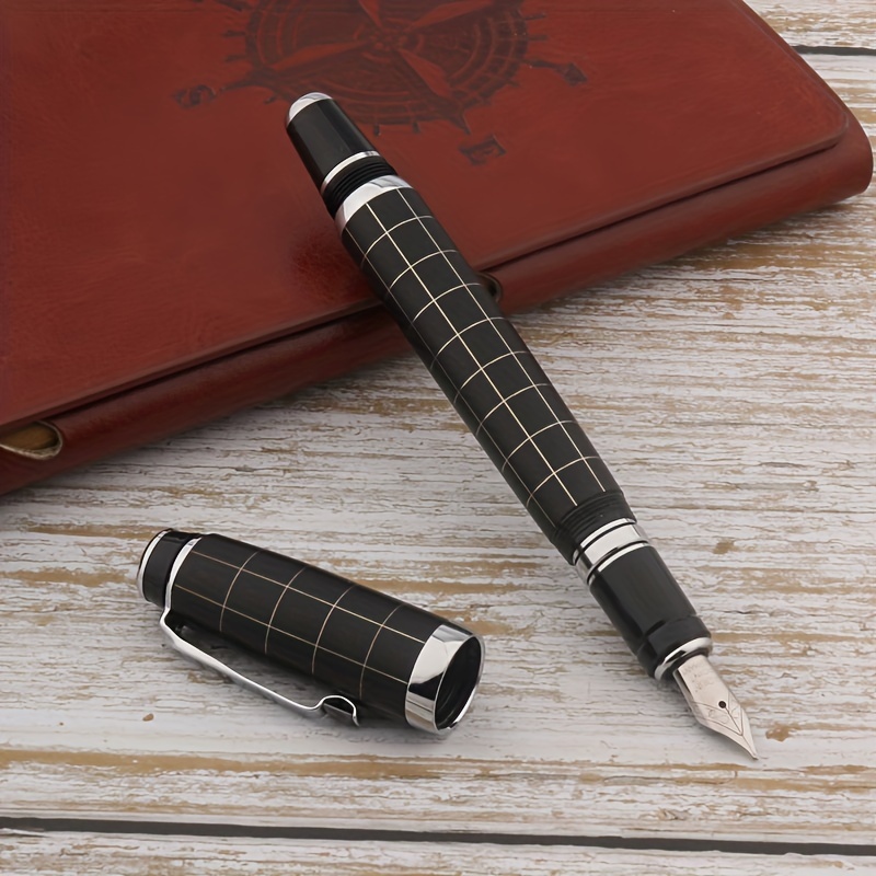 TEMU 1개 격자형 만년필 무광 블랙 메탈 회전식 펜 문구 펜 사무용품