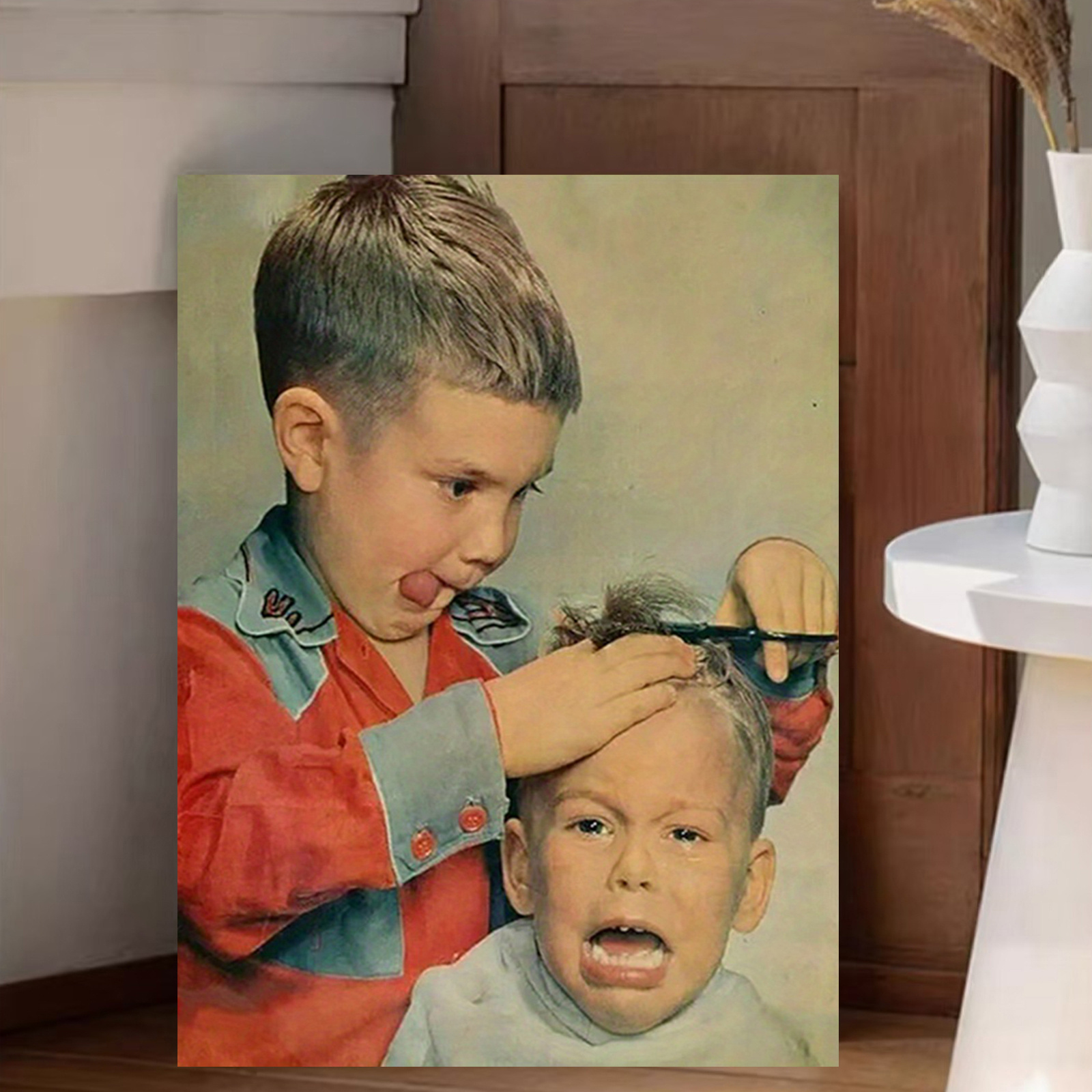 TEMU 1개 레트로 스타일 재미있는 이발사 캔버스 아트 프린트 - 유쾌한 이발소 장식과 장난스러운 청소년 일러스트, 집, 사무실, 카페, 호텔을 위한 완벽한 선물 - 액자 없는 12x16인치 벽 포스터