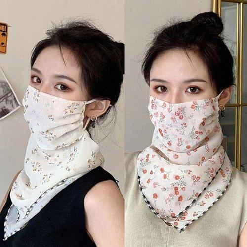 여름용 꽃무늬 얼굴가리개 통기성 좋은 가벼운 스카프형 마스크 WFKOPGJ