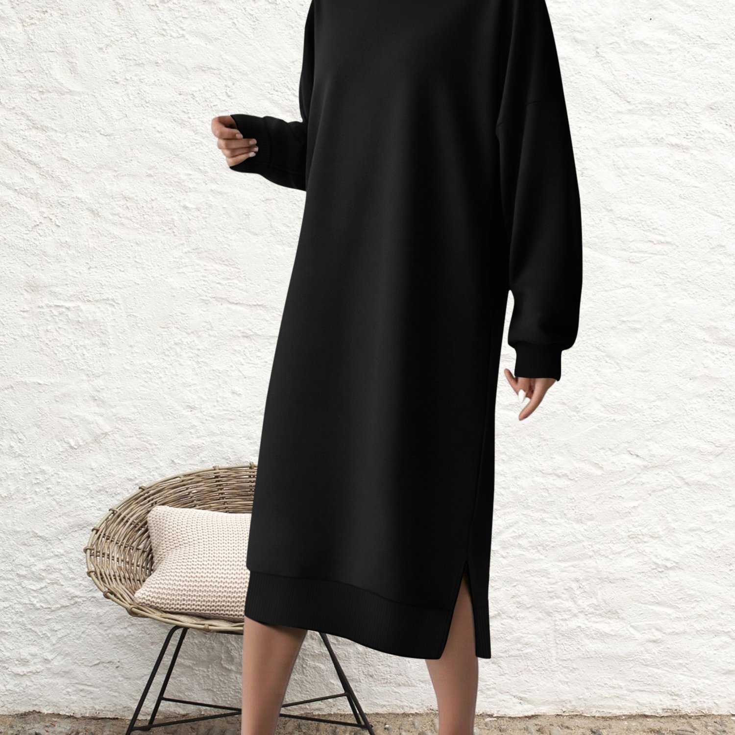 TEMU 여성용 겨울 따뜻한 안감 후드 풀 길이 드레스 - 고탄력 슬림핏 슬릿 지퍼 백 롱 드레스, 키 높이 풀 길이 슬릿 헴, 캐주얼부터 포멀 (오피스/파티) - 세탁기 사용 가능 겨울 코트 드레스