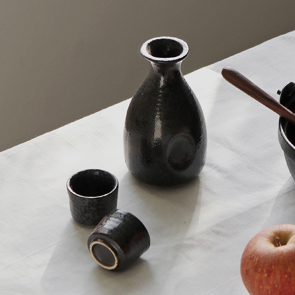 감성 도쿠리 1P + 술잔 2P 블랙 술잔세트 사케 주병 도자기술병