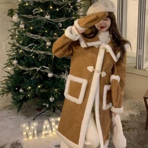 [엄지척]러블리룩 롱) 스웨이드 무스탕 코트 장갑 세트_19806694_667501