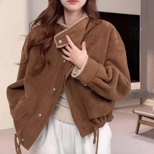 |CHJ6BBC|여성용 따뜻한 스웨이드 덤블 숏코트 겨울용