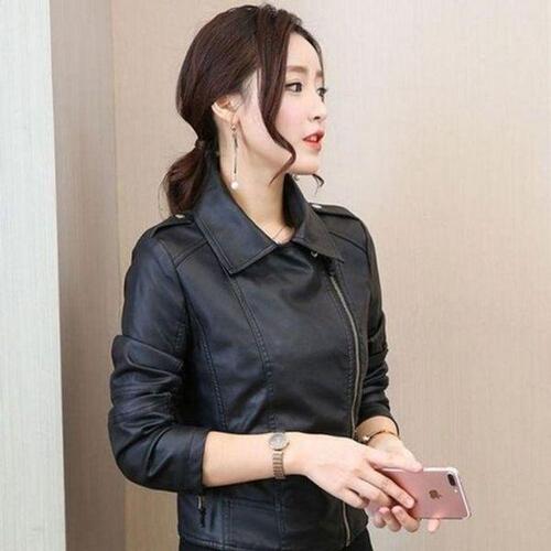 [끌레아]여성 지퍼 디자인 캐주얼 블랙 가죽 자켓 라이더 무스탕 가죽 자켓 여성