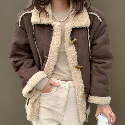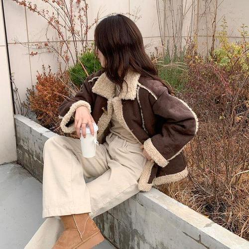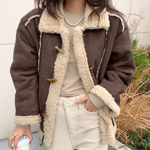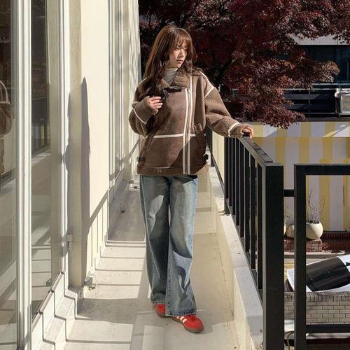 [신상오픈런]여성 겨울 양털 무스탕 루즈핏 스웨이드 재킷