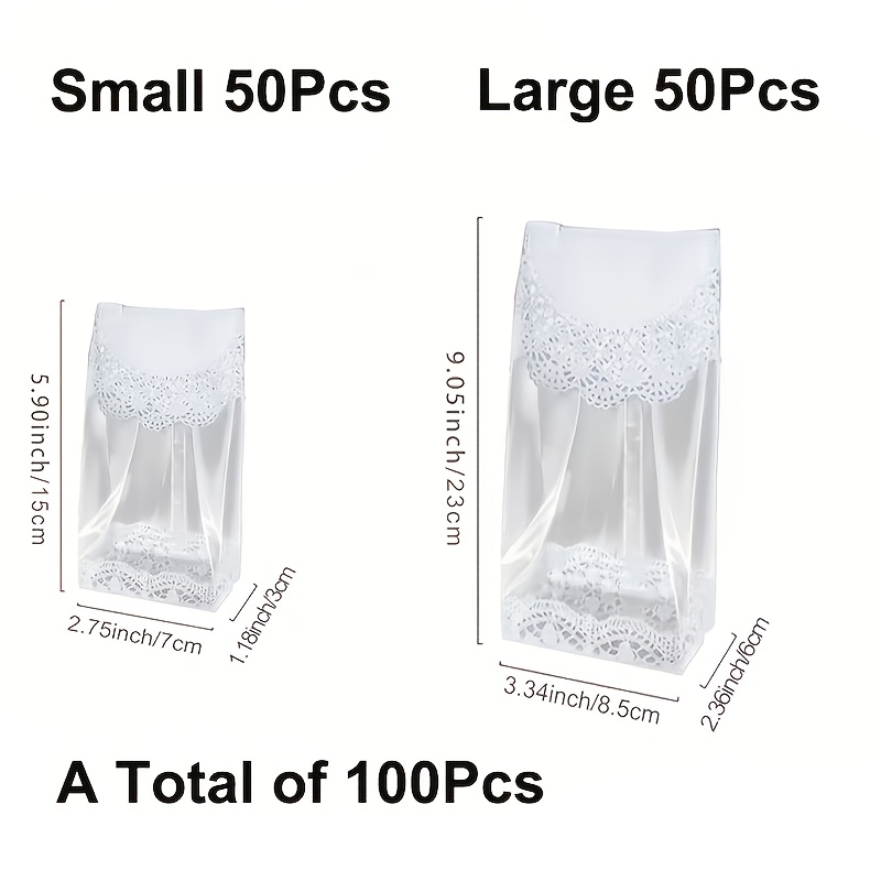 TEMU 50/100개 쿠키 봉투, 레이스 테두리 투명 베이킹 식품 봉투 - 플라스틱 셀로판 봉투 - 웨딩, 브라이덜 파티, 생일 파티 장식용 - 사탕, 쿠키 & 선물 포장 - DIY 프로젝트 & 할로윈 크리스마스 축하용, 크리스마스 선물 봉투