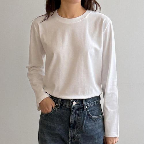 [유야]여성 국산 워싱 면 스판 세미 크롭 무지 긴팔티 -FTS1036- 봄 가을