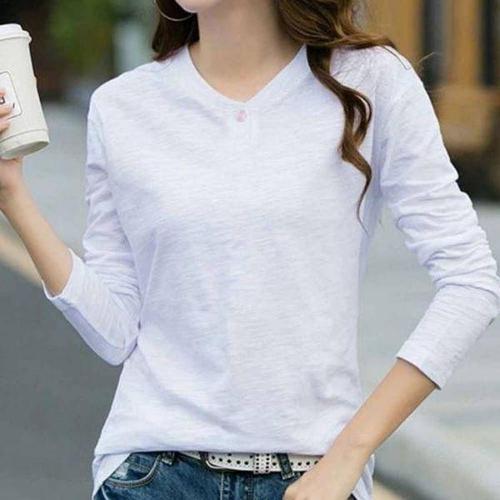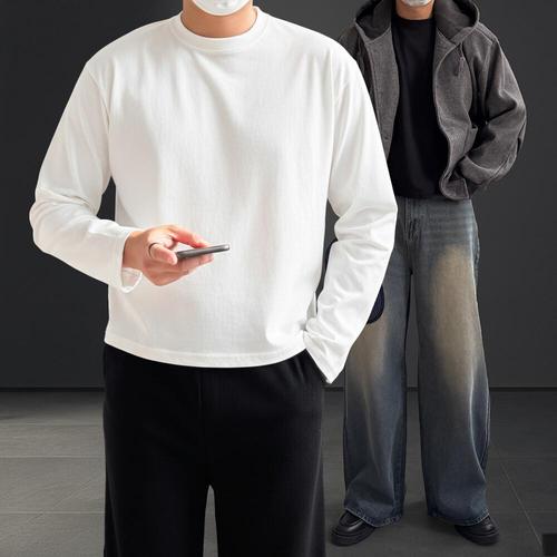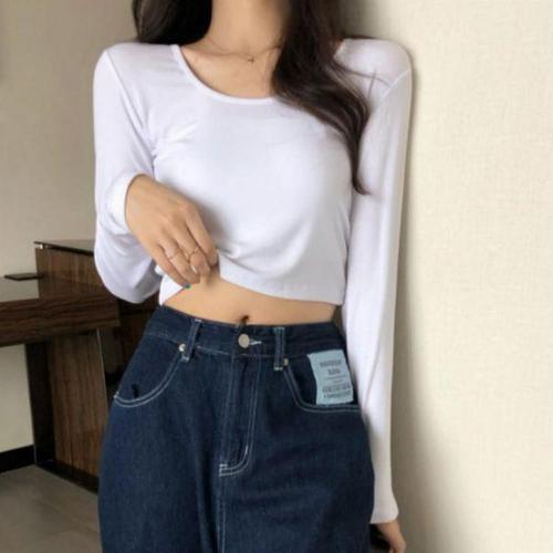 [에이치플러스몰]여자 대학생 데일리 긴팔 간절기 클래식 크롭 무지 티