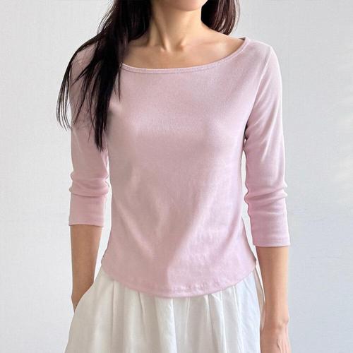 [유야]여성 국산 세미크롭 면 무지 보트넥 7부 티셔츠 -FTS1025- 봄 가을