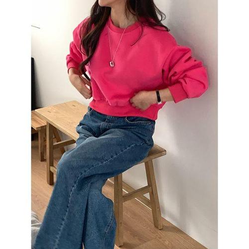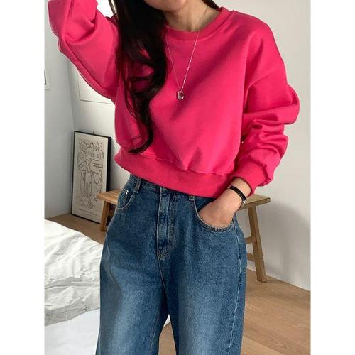 [샵앤]여성 무지 크롭 맨투맨 티셔츠 21DS-WSH-4904-핑크