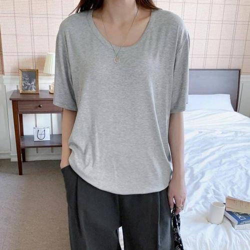 [에이치플러스몰]여자 5컬러 모던 소프트 무지 크롭 반팔 티셔츠