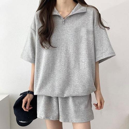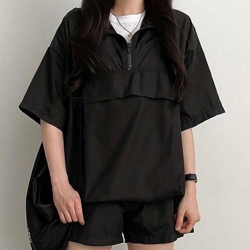 [셀러허브_여성트랜드패션]ONM 반집업 반팔 아노락 세트 운동복 무지 일상복