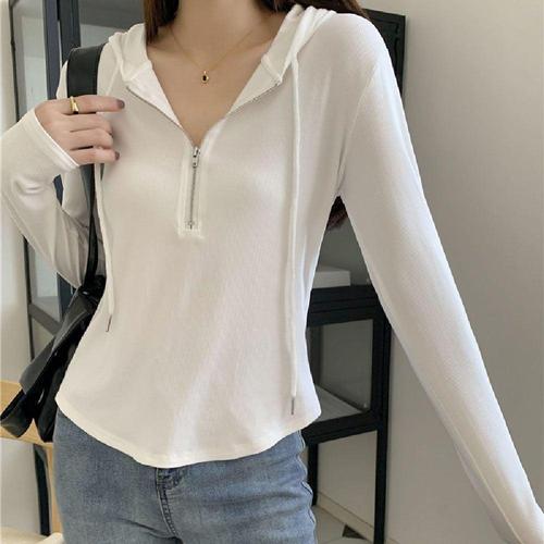 슬림핏 여성가을티셔츠 티셔츠 후드 무지 의류 반집업 WD91173