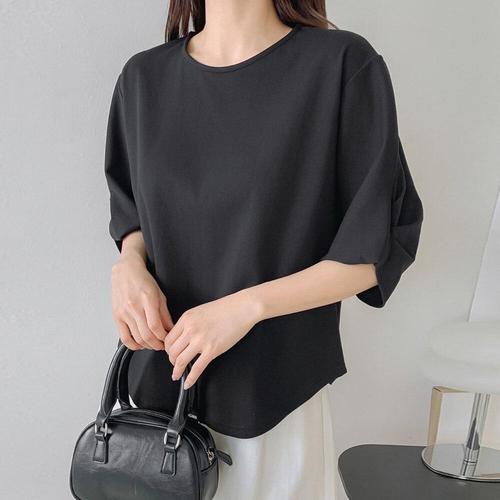 [유야]여성 퍼프 무지 라운드넥 5부 반팔 티셔츠 -FTS1116- 봄 여름