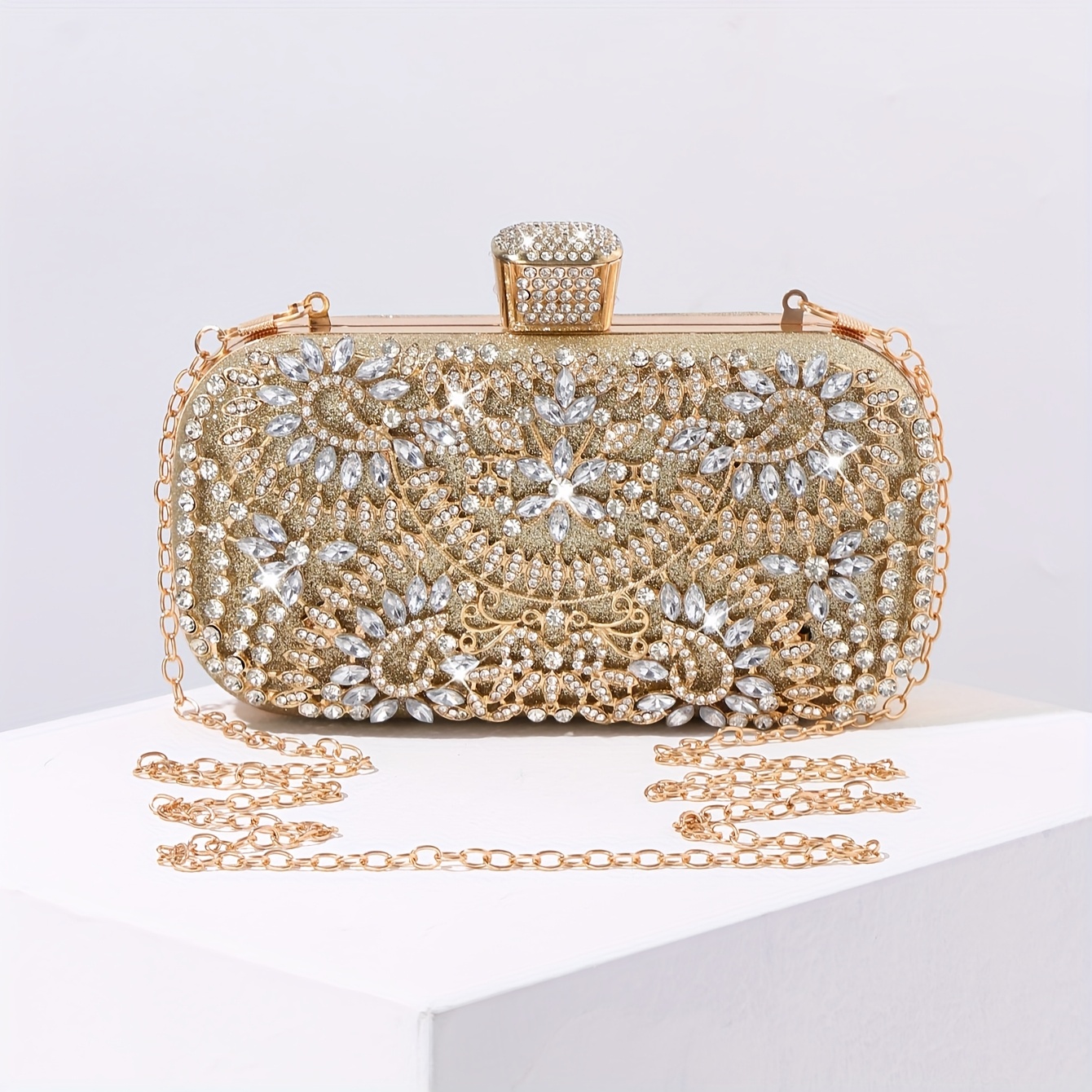 TEMU 여성 스파클링 클러치 가방, 우아한 글리터 이브닝 백, 댄스 웨딩 파티 프로미 신부용 블링 이브닝 핸드백. 스파클링 스톤 장식 메탈 프레임 클러치 백