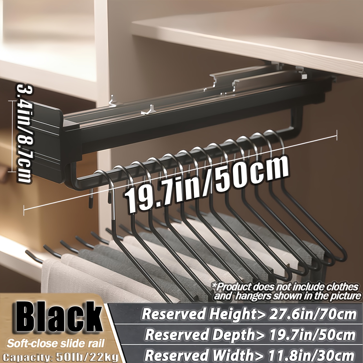 TEMU 고강도 탑마운트 풀아웃 팬츠 랙, 소프트 클로즈 댐핑, 20kg 고용량 텔레스코픽 바지걸이, 정장 및 공간절약형 옷장 정리용, 마운트형 옷장 시스템