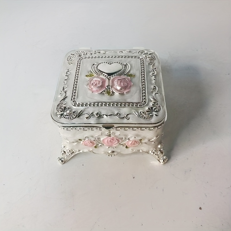 TEMU 럭셔리 유럽 빈티지 에나멜 목걸이 상자 - 아연 합금 주얼리 케이스, 힌지 뚜껑 & 패브릭, 우아한 결혼식/발렌타인데이/카니발 선물, 목걸이 전시 및 보관용 (광택 테이블탑 박스)