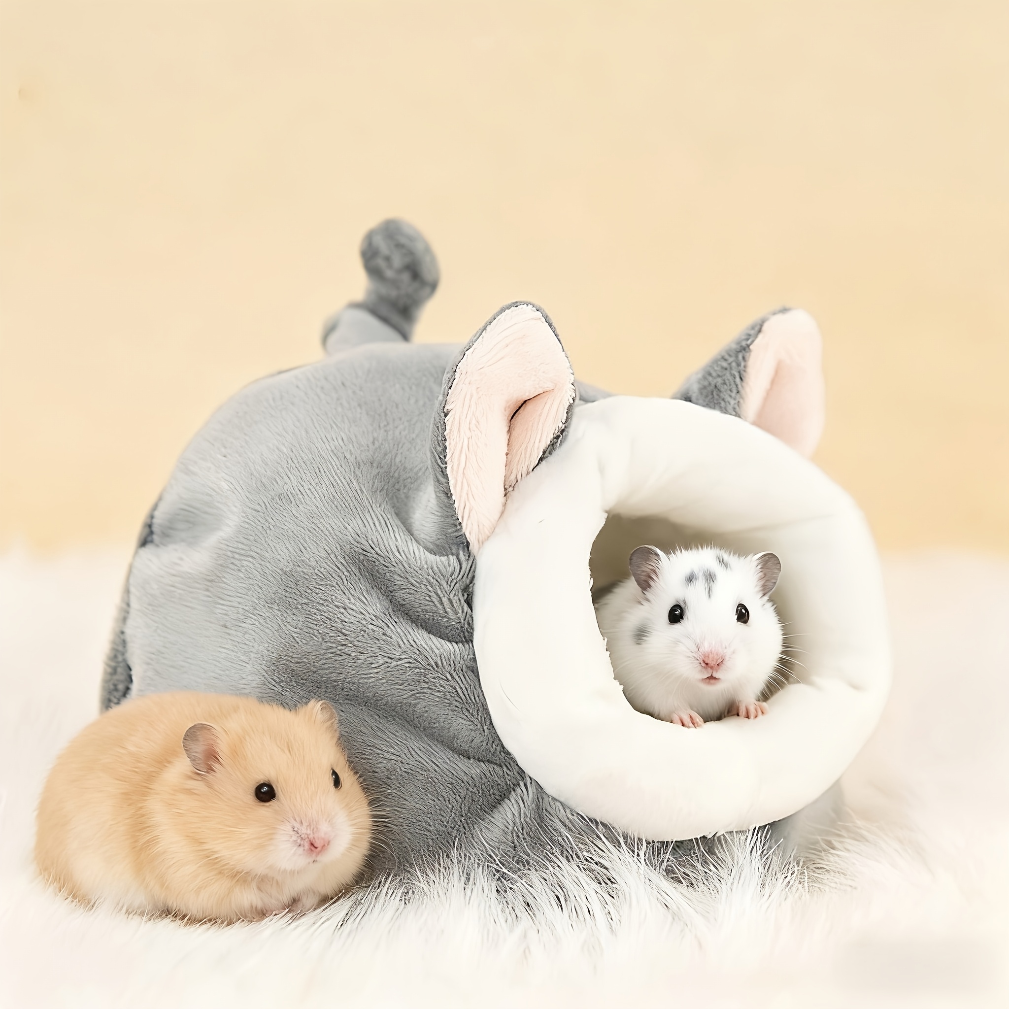 TEMU 1개 겨울용 따뜻한 플러시 햄스터 침대 & 기니피그 둥지 - 부드러운 소형 애완동물 슬리핑백 해먹 포함, 친칠라, 햄스터, 쥐, 다람쥐를 위한 아늑한 타원형 케이지 액세서리 - 두꺼운 소재, 조립 불필요