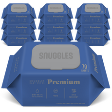 스너글스 프리미엄 유아용 저자극 아기물티슈 캡형, 10팩, 70매, 75g
