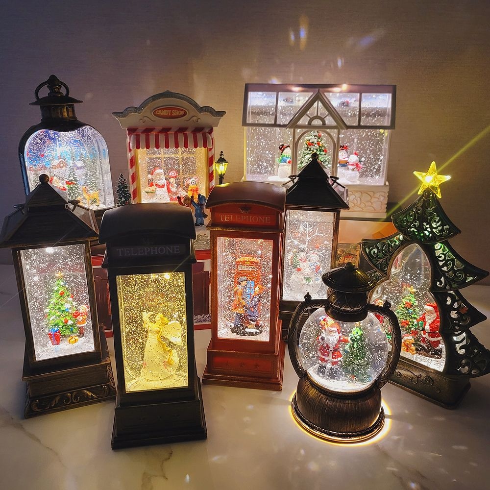 크리스마스 오르골 스노우볼 무드등 특대형 뮤직박스 오벌 랜턴 눈내리는 투명 직사각