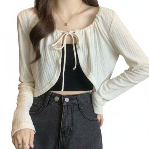 [신상오픈런]여성 루즈핏 스트링 크롭 볼레로 가디건