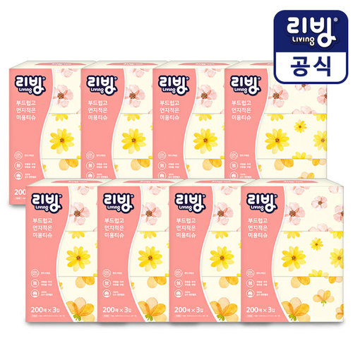 삼정펄프 먼지적은 리빙 소프트 미용티슈 200매 3입x8 (총 24각)/각티슈/갑티슈