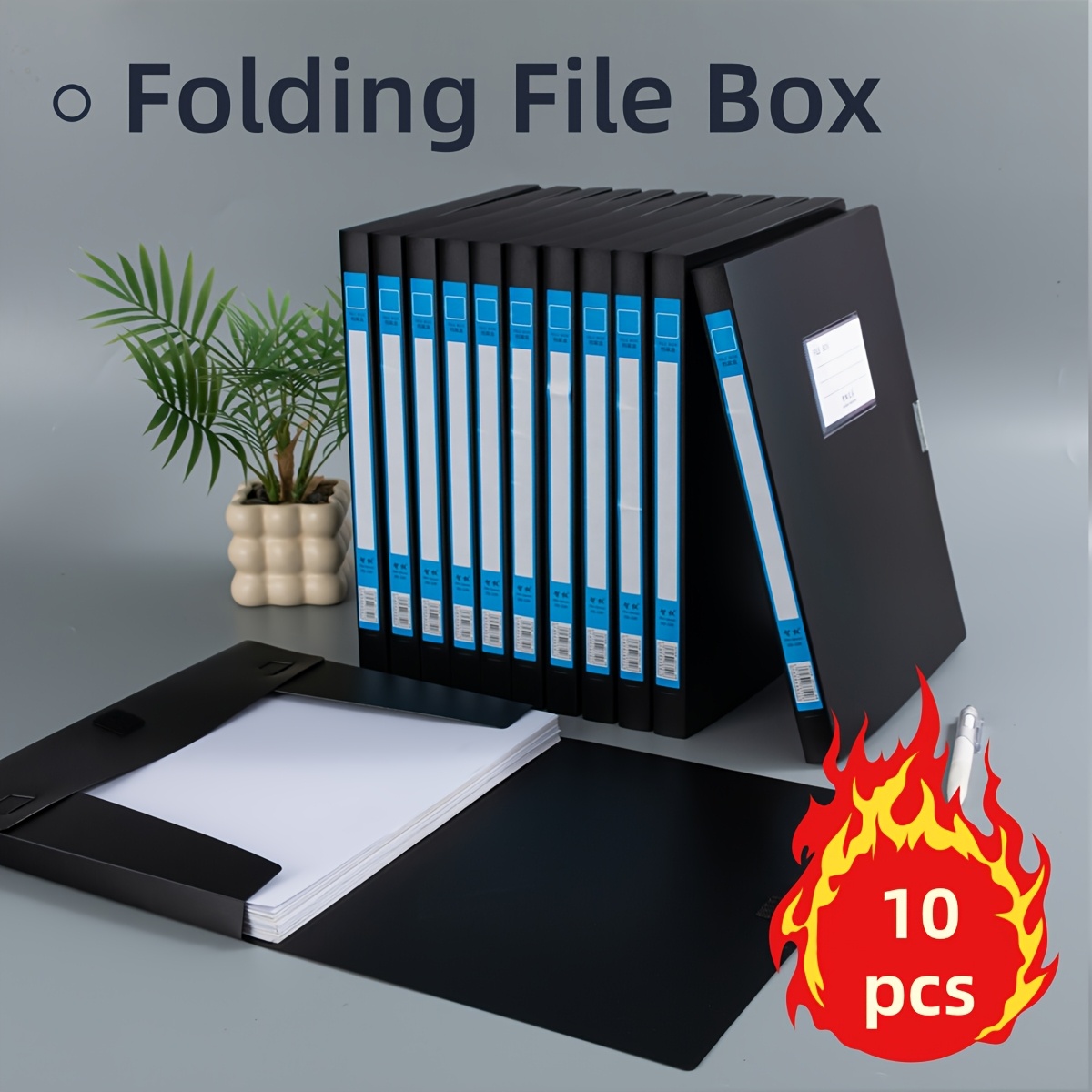 TEMU 10개 블랙 플라스틱 A4 파일 보관함, 라벨 탭 및 손잡이 포함, 고품질 문서 정리용, 사무실/가정용 내구성 아카이브 폴더, 서류 보호, 책상용 파일 정리함, 안전한 문서 보관, 세련된 디자인, 매끄러운 마감|A4용지