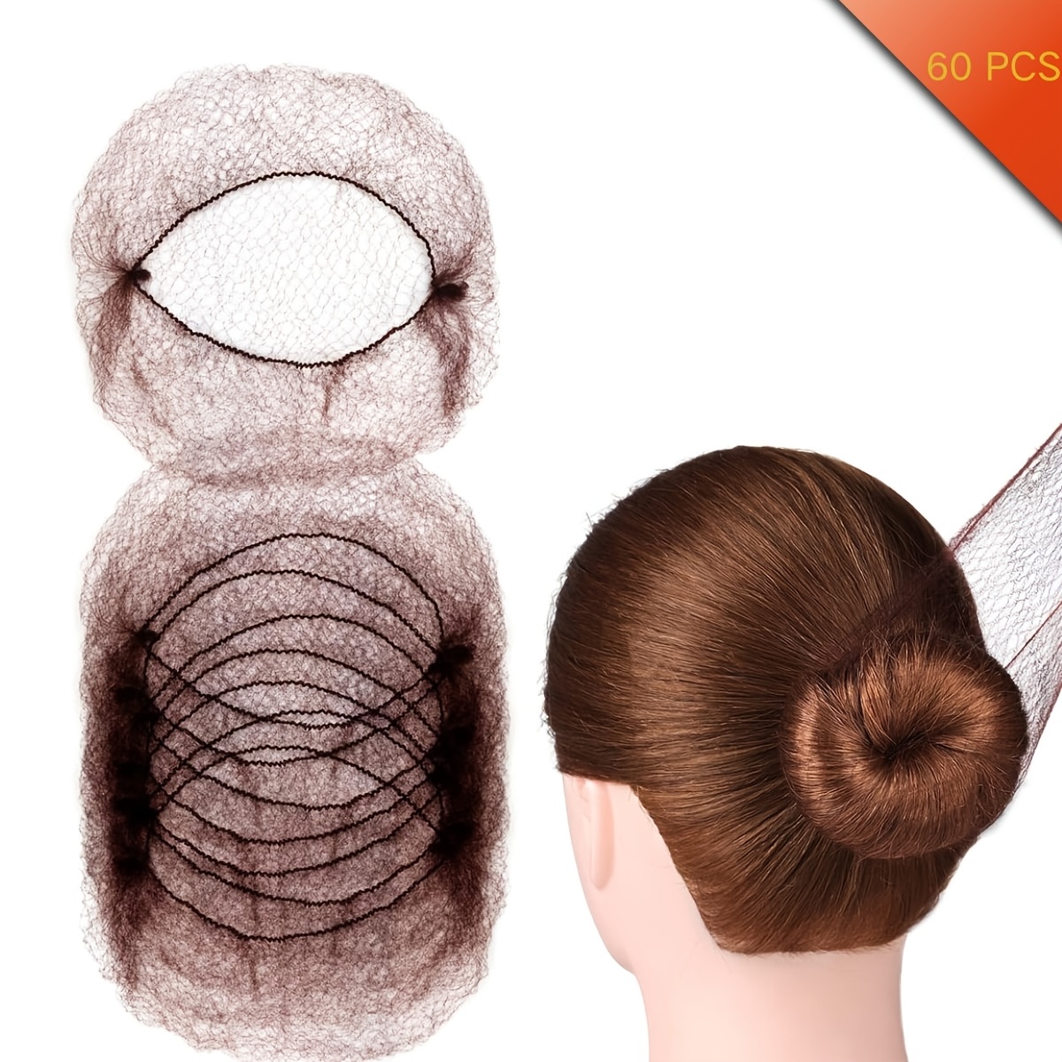TEMU 60개 식품 서비스 직원용 투명 나일론 헤어넷, 주방 헤어 메쉬 캡, 20인치, 블랙/딥 브라운, 헤어넷, 빵망