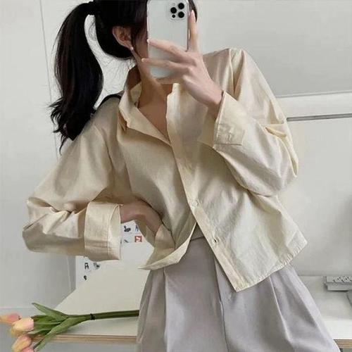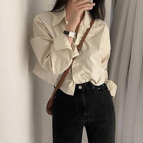 [셀러허브_여성트랜드패션]ONM 데일리 미니멀 여성 2컬러 모던 크롭 셔츠