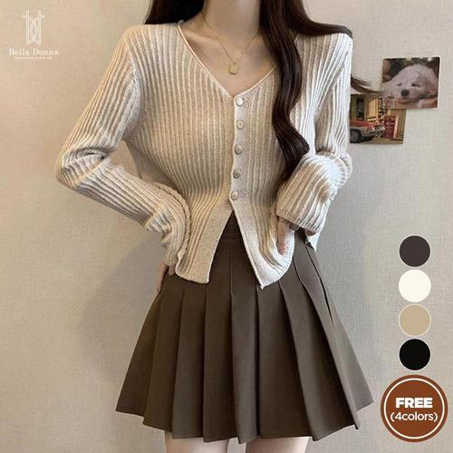 벨라도나 여성 가을 미니멀 4컬러 골지 세미 크롭 브이넥 가디건자켓