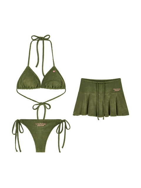 [네이키드서프클럽] [SET] 하트 테리 비키니 + 플레어 미니 스커트 (Olive)