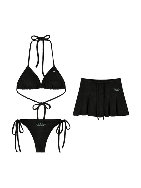 [네이키드서프클럽] [SET] 하트 테리 비키니 + 플레어 미니 스커트 (Black)