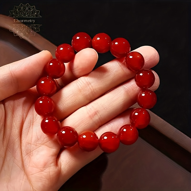 TEMU 천연 레드 호박돌, 12mm 비즈, 고품질 반투명 호박돌, 일상적인 착용 및 행운을 주는 선물로 적합