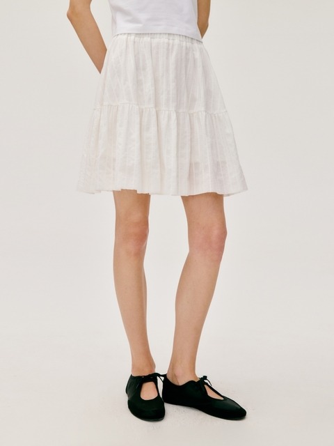 [드파운드] 셔링 밴딩 미니 스커트 - 화이트