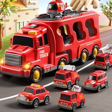 토요요 소방차 장난감 경찰차 중장비 자동차 미니카 주차타워 작동완구 출동 구조대 5in1 아기 선물 세트, 레드, 1개