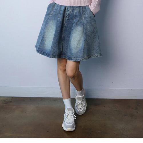 파라노말샵 / 데님 주름 플레어 미니 스커트 (파라노말샵)