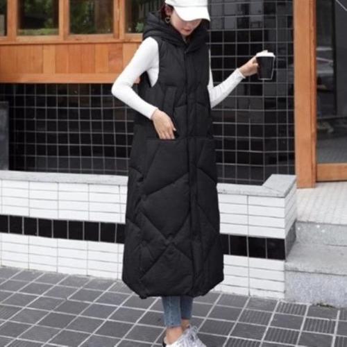 [다잇템][다잇템] 여성 누빔 미니멀리즘 패딩 후디 체스 롱 베스트_23483378_588872