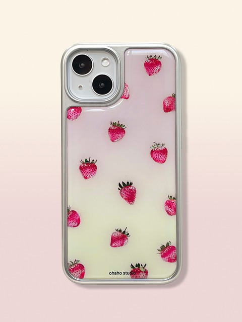 [오하호 스튜디오] 미니 스트로베리 폰 케이스 (실버 범퍼)