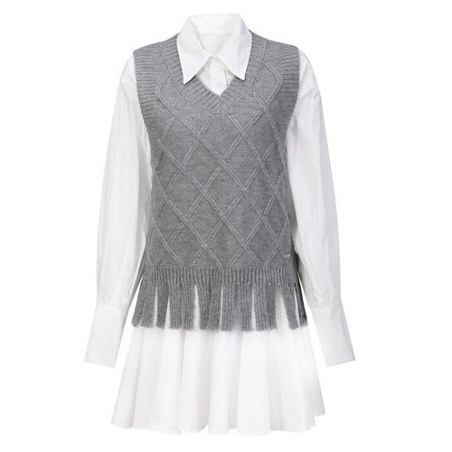 트위디아 / (라스트피스) 2PCS 카레나 플레어 셔츠 미니 원피스